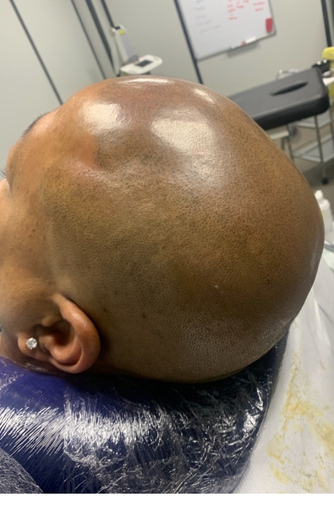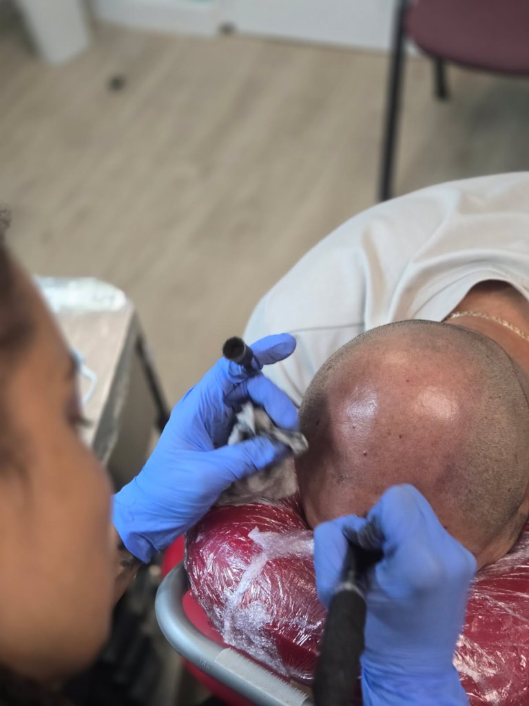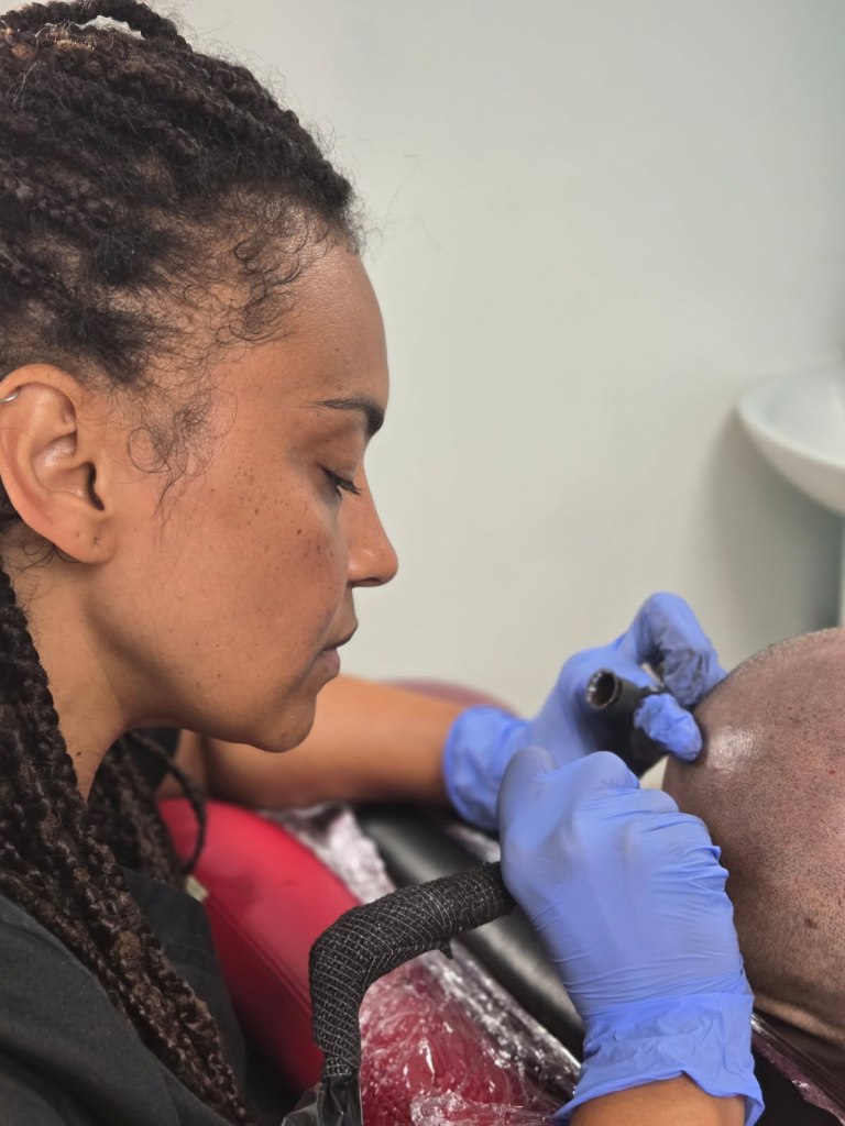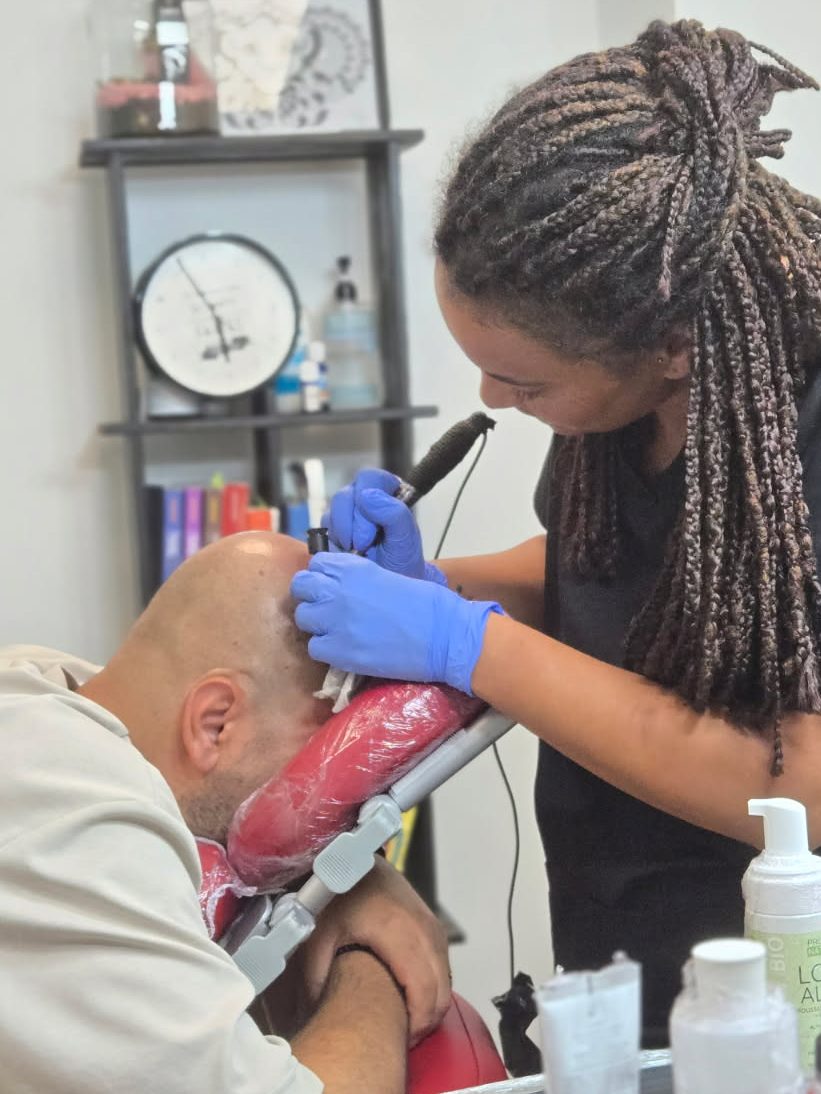 Technique de micro pigmentation du crâne pour un effet rasé afin de reconstituer une densité capillaire sur un début de calvitie